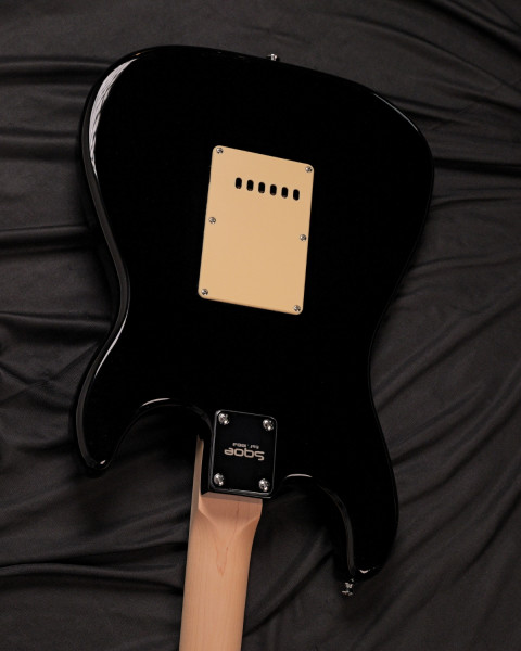 - Basswood body in Black glossy finish
